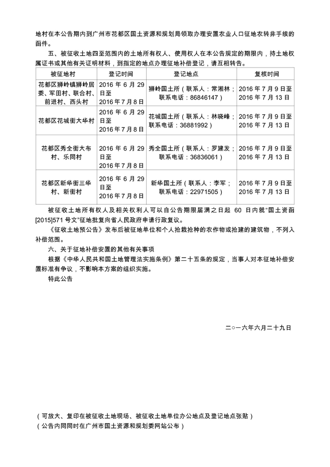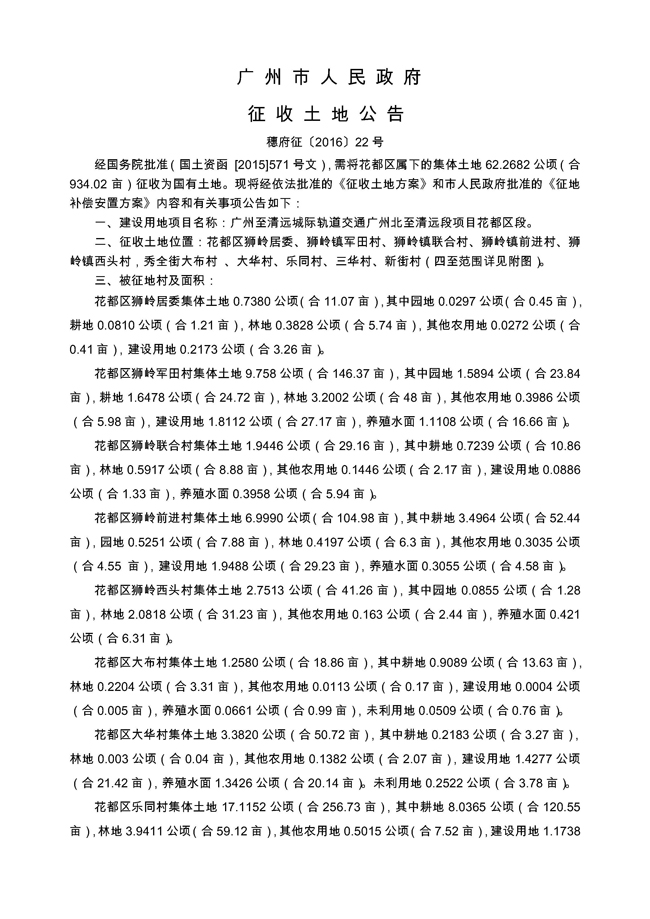 广州市人民政府征收土地公告——穗府征〔2016〕22号
