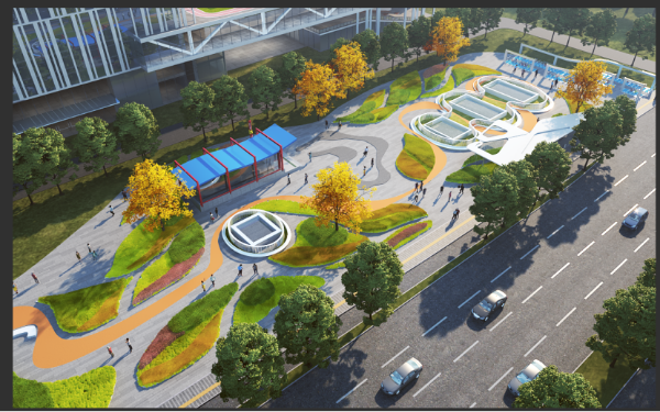 三是功能复合,无缝衔接城市功能。通过“隐藏式”设计,将车站出入口及风亭嵌入口袋公园,配套座椅、休憩乘凉、体育运动、文艺展陈、夜间经济等设施,打造集多功能于一体的公共空间。