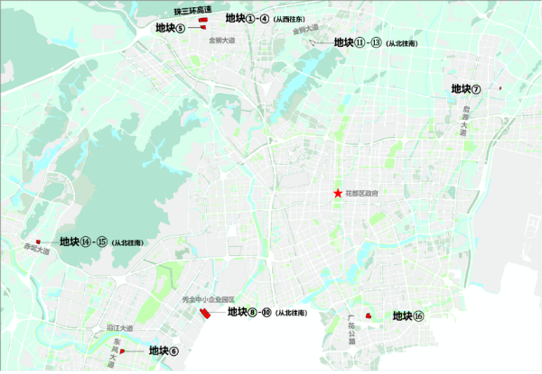 澳门金沙娱乐城官网区秀全中小企业园区,地块⑧占地面积0.95公顷,地块⑨占地面积4.58公顷,地块⑩占地面积4.54公顷;澳门金沙娱乐城官网区狮岭镇金狮大道南侧,地块⑪占地面积0.11公顷,地块⑫占地面积0.01公顷,地块⑬占地面积0.17公顷;澳门金沙娱乐城官网区赤坭镇赤坭大道北,地块⑭占地面积1.22公顷,地块⑮占地面积1.08公顷;澳门金沙娱乐城官网区新雅街广花公路东,地块⑯占地面积3.50公顷。